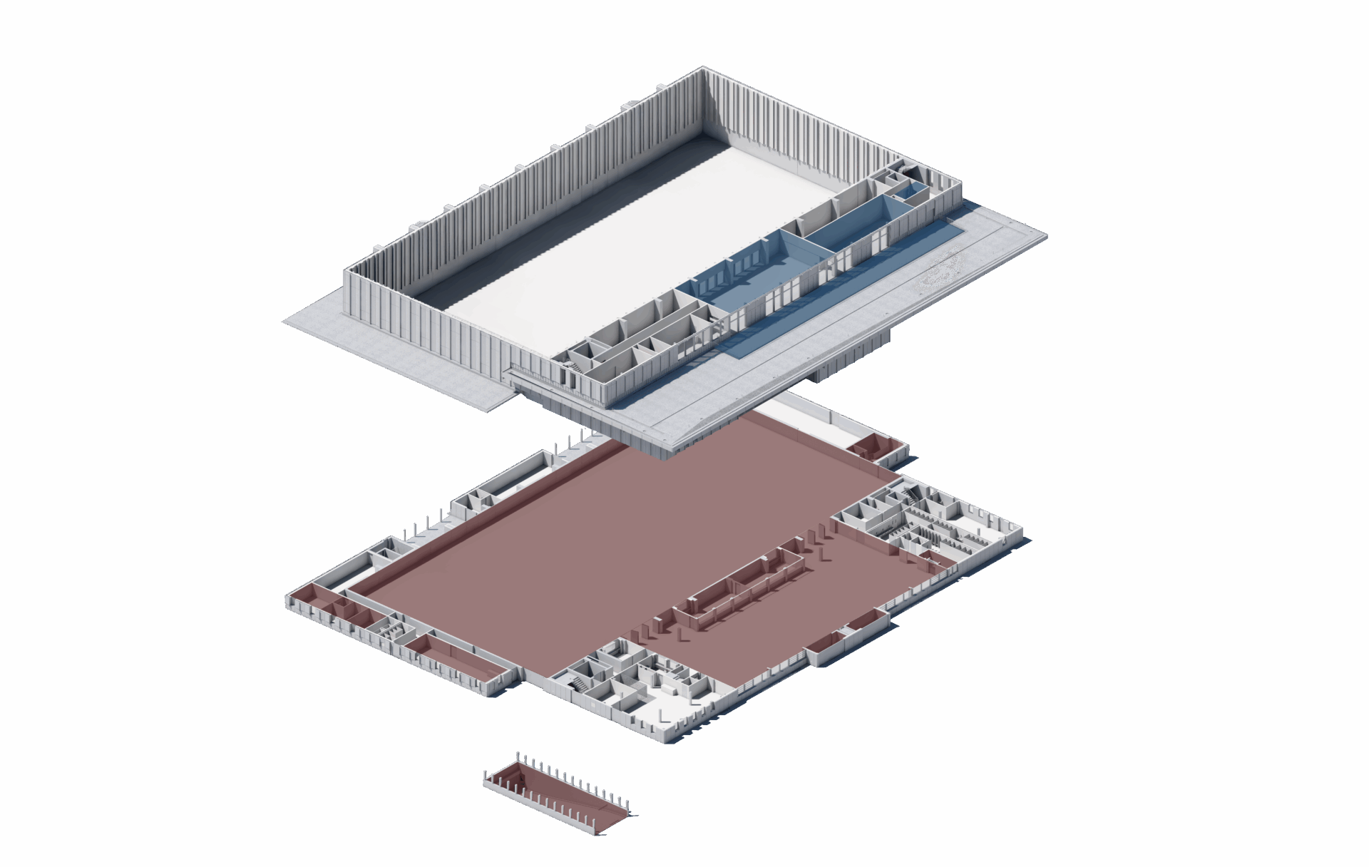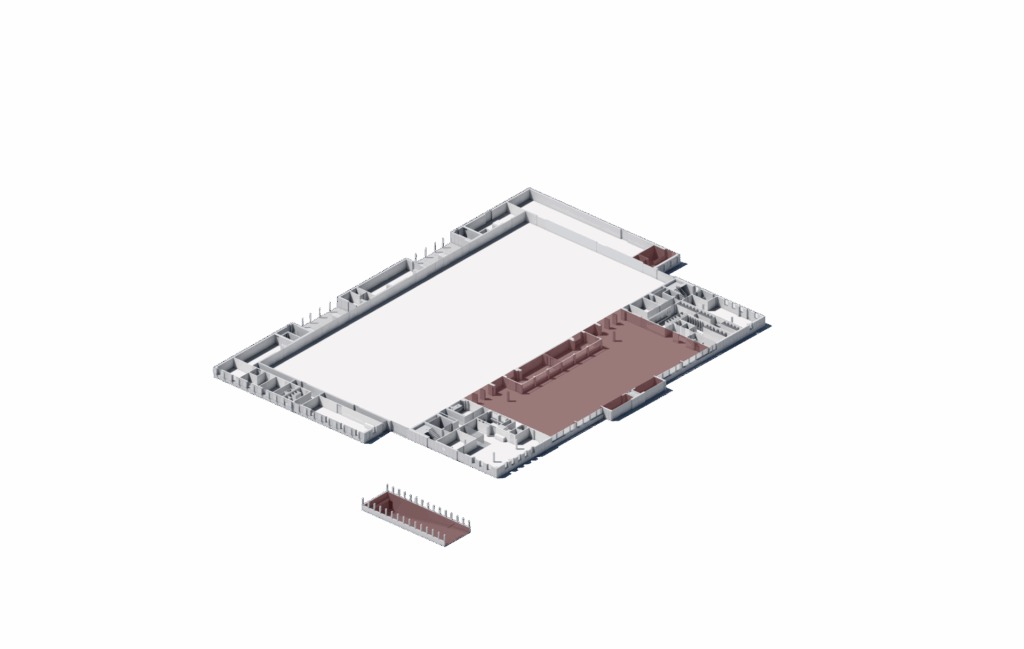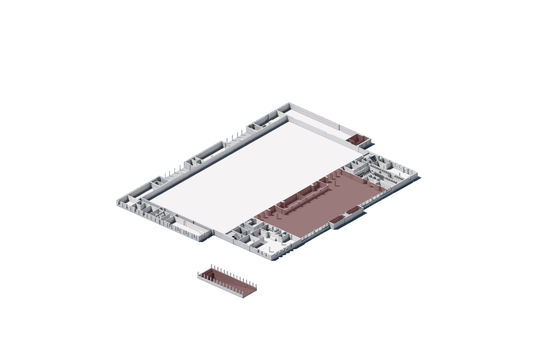 Die Haupthalle erstreckt sich auf 3’200 m² im Erdgeschoss. Zwei fest installierte Trennvorhänge ermöglichen eine Unterteilung in bis zu drei Raum-Set-Ups – ideal auch für kleinere Veranstaltungen oder Event-Inszenierungen durch separate Bereiche.